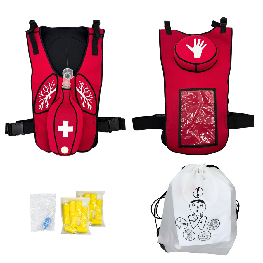 - Accessories: Includes training vest, foreign body obstruction foam plugs, and a carrying bag.