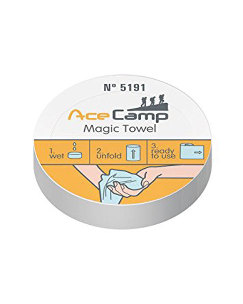 Design: Compact, dry towel that expands into a full-sized towel when wet