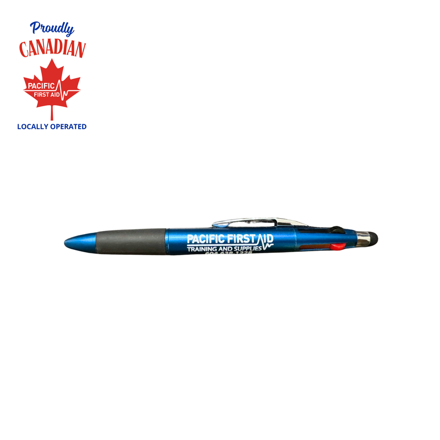 Blue Plastic Pen with Stylus & Multi-Ink Function