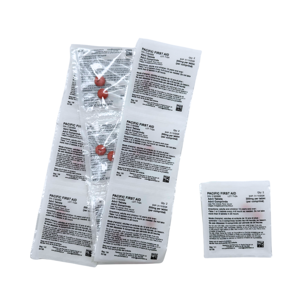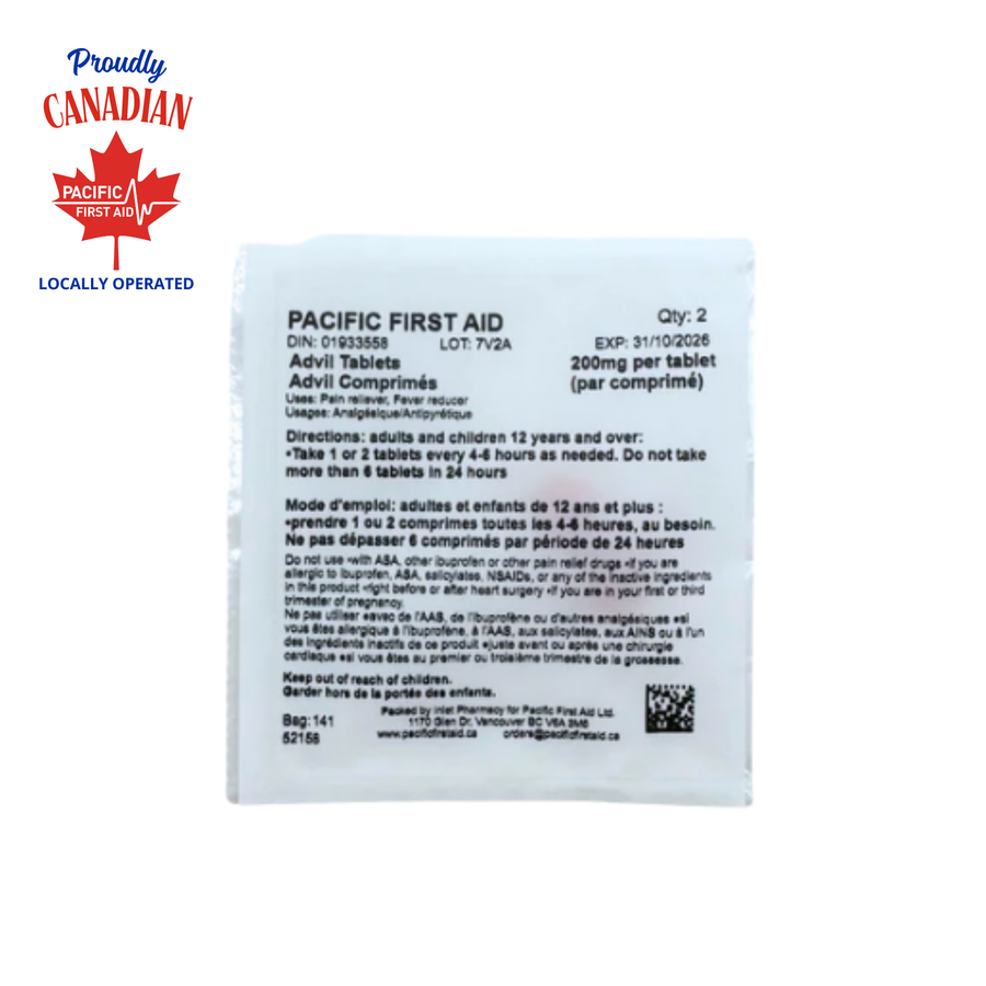 - Ibuprofen: 200 mg (Pain Reliever and Fever Reducer).
